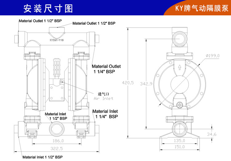 3、KY氣動隔膜泵以空氣為動力,也就注定了他的安全性能和安靜性能。