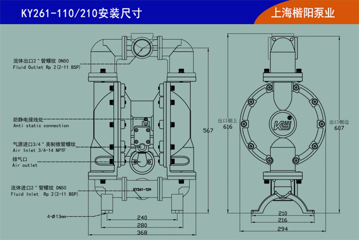 KY261-120不銹鋼304氣動隔膜泵和KY261-220不銹鋼316L氣動隔膜泵是上海楷陽泵業的高端產品之一,自吸能力和流量輸送能力極強:干吸可以達到5米垂直高度,濕吸8-10米垂直高度,在工作壓力8公斤時還可以保證足夠流量輸出。