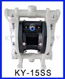 KY-15LP增強型不銹鋼氣動隔膜泵,是上海楷陽泵業不斷吸取和學習進口氣動隔膜泵的經驗研發成功的最新型國產304氣動隔膜泵。KY-15LP氣動隔膜泵在泵體和配氣裝置都有革命性的改進,具有無死點、效率高、流量大等特點。廣泛應用于制藥、污水處理、食品、化工、汽車、涂料等行業。KY增強型氣動隔膜泵的材質有鑄鐵、鋁合金、不銹鋼304等,隔膜片選用山道橡膠和特氟龍材質。