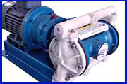 KYD電動隔膜泵品牌產品的源動力是由電機給予,電機通過減速機帶動泵體左右兩端柱塞上的隔膜片左右往復運動。在左右兩個泵腔里裝有上下四個單項球閥,隔膜片的左右運動使泵腔內的容積產生有規律的改變。迫使四個單項球閥交替的開啟和關閉,從而將液體吸入和排出產生流體。新一代DBY電動隔膜泵獨特的原理和簡單的結構贏得了廣大客戶一致好評,主要優點可以總結為:通過性能好,可代替離心泵、泥漿泵、雜質泵良好的通過大顆粒雜質、泥漿等;運行平穩,安全可靠、噪音低;可以空載運行,不需引灌水可自吸等。