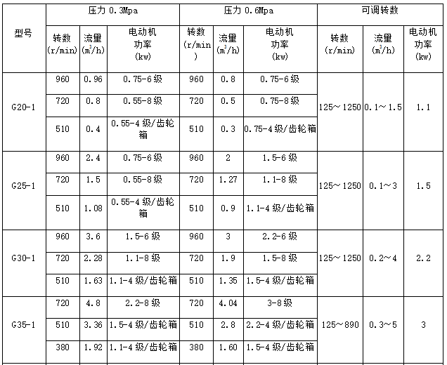 G型系列料斗式螺桿泵的技術(shù)參數(shù):