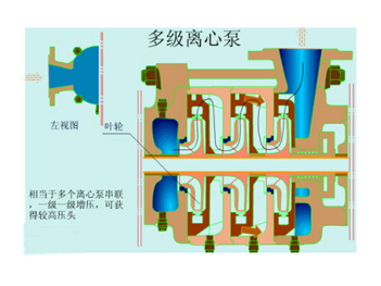 相當于多個離心泵串聯,一級一級增壓,可獲得較高壓頭。